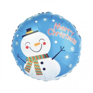 PALLONCINO MYLAR NATALE TONDO 18" MERRY CHRISTMAS PUPAZZO DI NEVE SFONDO CELESTE