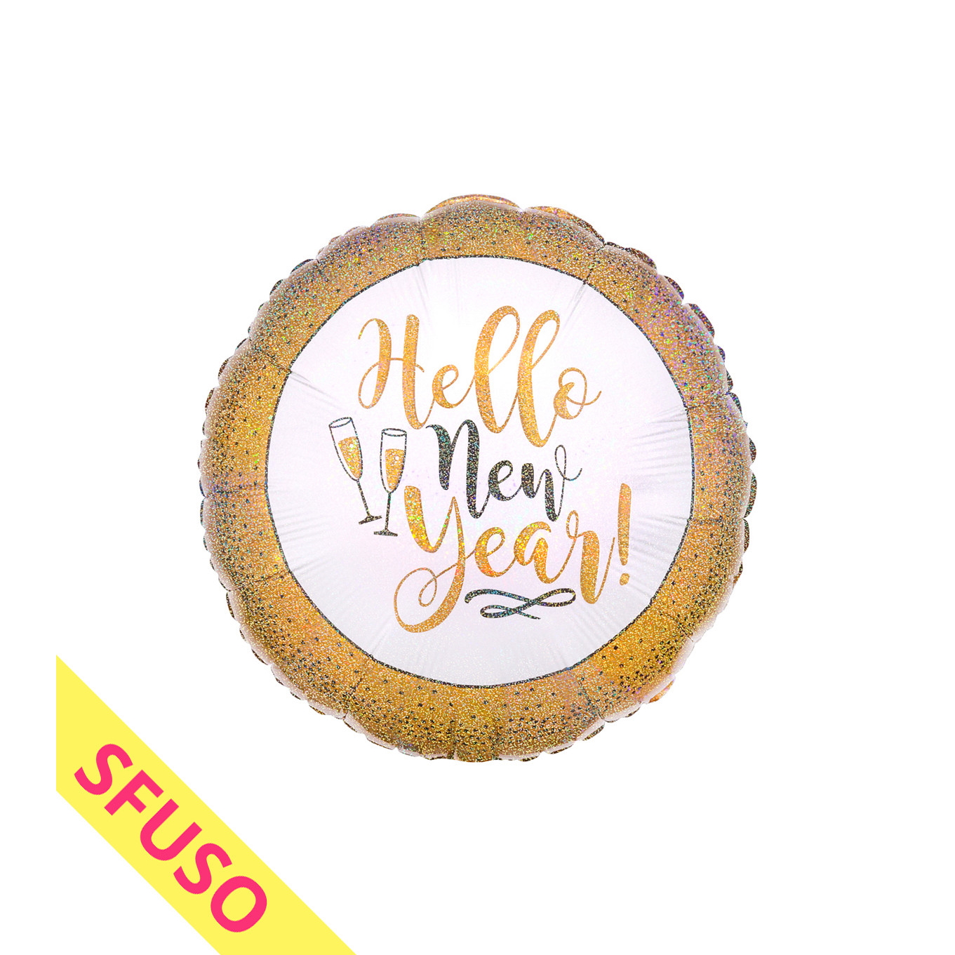 PALLONCINO MYLAR TONDO 18" HAPPY NEW YEAR ORO E BIANCO