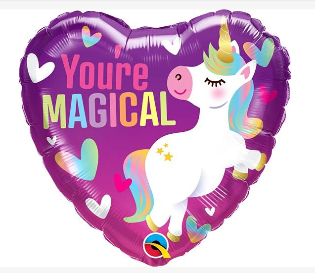 PALLONCINO MYLAR CUORE 18" VIOLA CON UNICORNO E SCRITTA YOU'RE MAGICAL