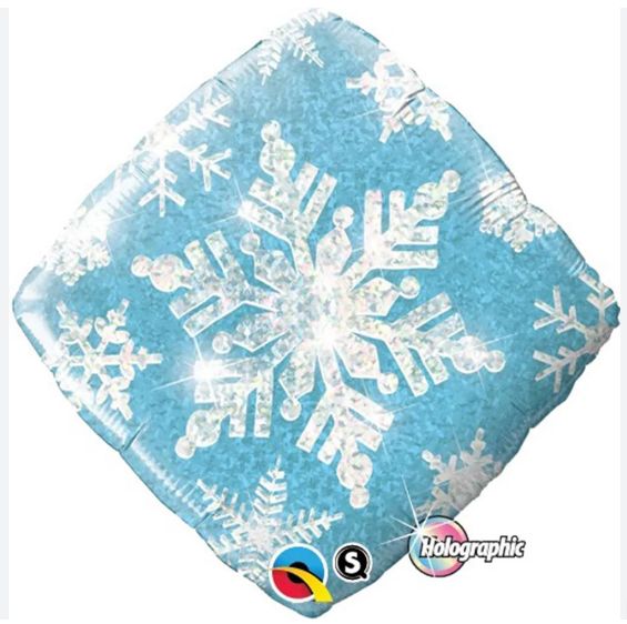 PALLONCINO MYLAR ROMBO 18" CELESTE CON FIOCCO DI NEVE ARGENTO