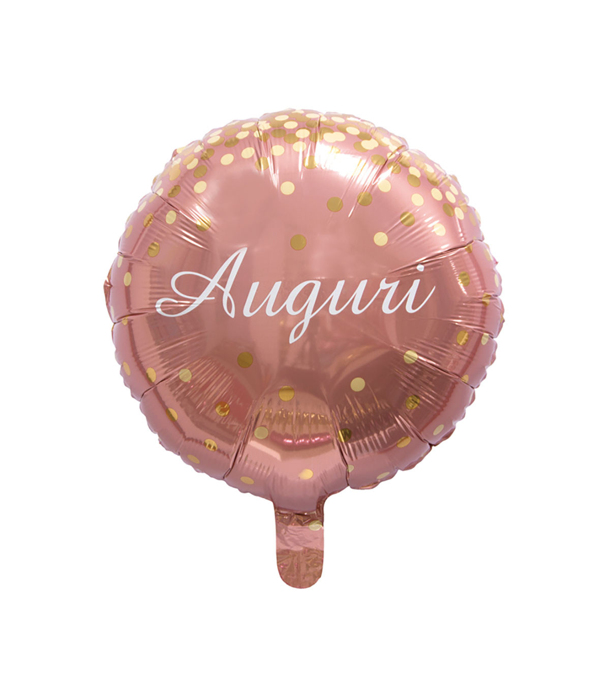 PALLONCINO MYLAR TONDO 18'' AUGURI ROSE GOLD CORIANDOLI