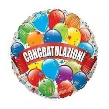 PALLONCINO MYLAR TONDO 18" LAUREA CONGRATULAZIONI CON PALLONCINI COLORATI