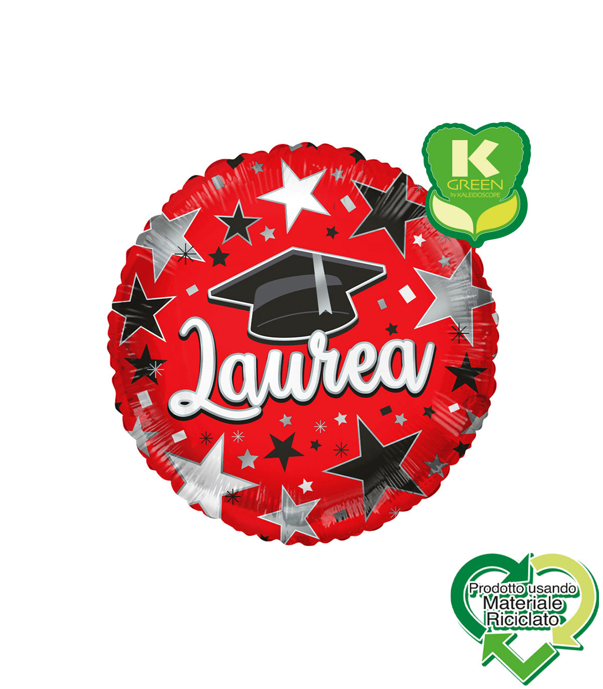 PALLONCINO MYLAR TONDO LAUREA ROSSO CON TOCCO E STELLE
