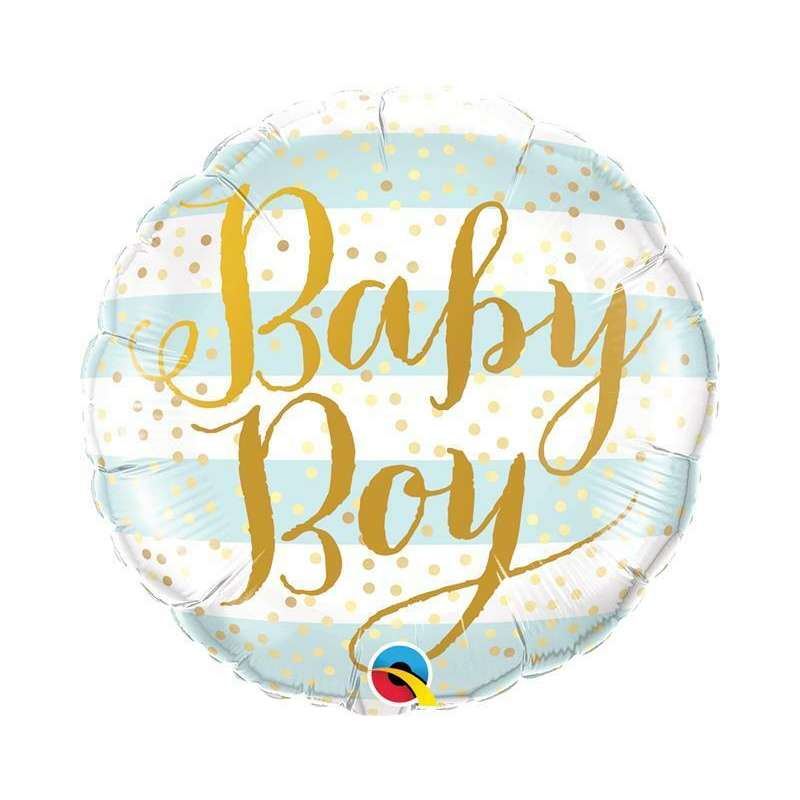 PALLONCIO MYLAR TONDO 18" NASCITA BABY BOY CON CORIANDOLI ORO