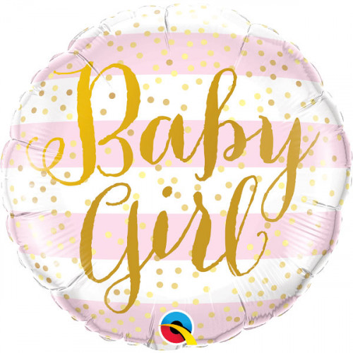 PALLONCINO MYLAR TONDO 18" NASCITA BABY GIRL CON CORIANDOLI ORO