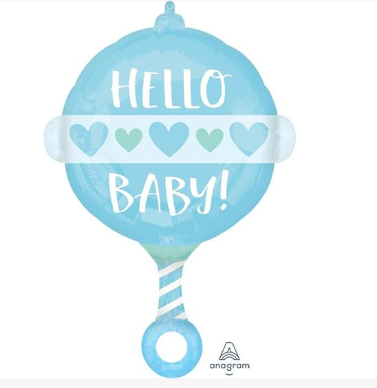 PALLONCINO MYLAR TONDO 24" CELESTE HELLO BABY A FORMA DI SONAGLINO