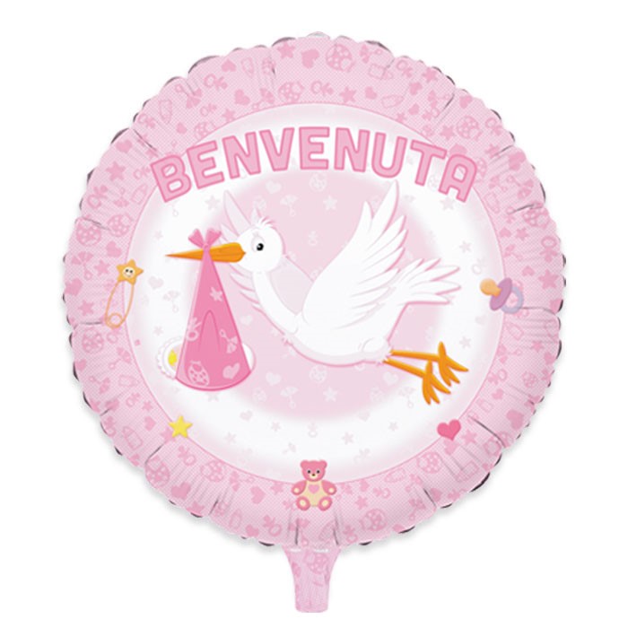 PALLONCINO MYLAR TONDO 18" BENVENUTA CON CICOGNA