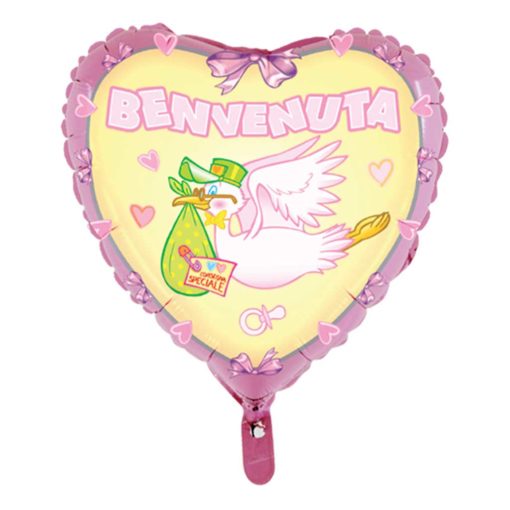 PALLONCINO MYLAR CUORE MINI SHAPE CICOGNA ROSA