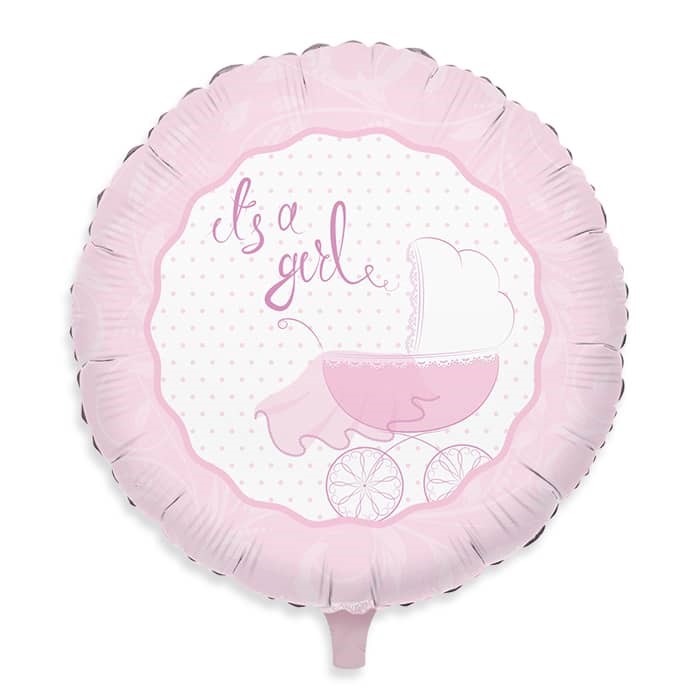 PALLONCINO MYLAR TONDO 18" IT'S A GIRL CARROZZINA