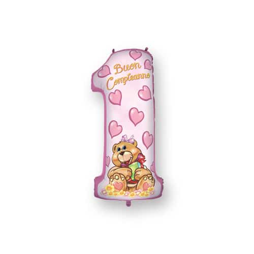 PALLONCINO MYLAR NUMERO 100 CM ROSA 1 ORSO