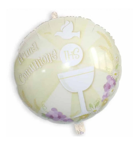 PALLONCINO MYLAR SUPER SHAPE PRIMA COMUNIONE AVORIO CON CALICE E COLOMBA