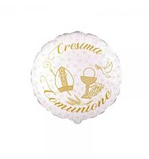 PALLONCINO CRESIMA COMUNIONE MYLAR TONDO 18" ORO BIANCO CRESIMA COMUNIONE