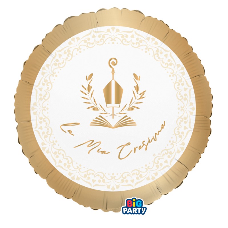 PALLONCINO CRESIMA MYLAR TONDO 18" LA MIA CRESIMA ORO CHROME BIANCO