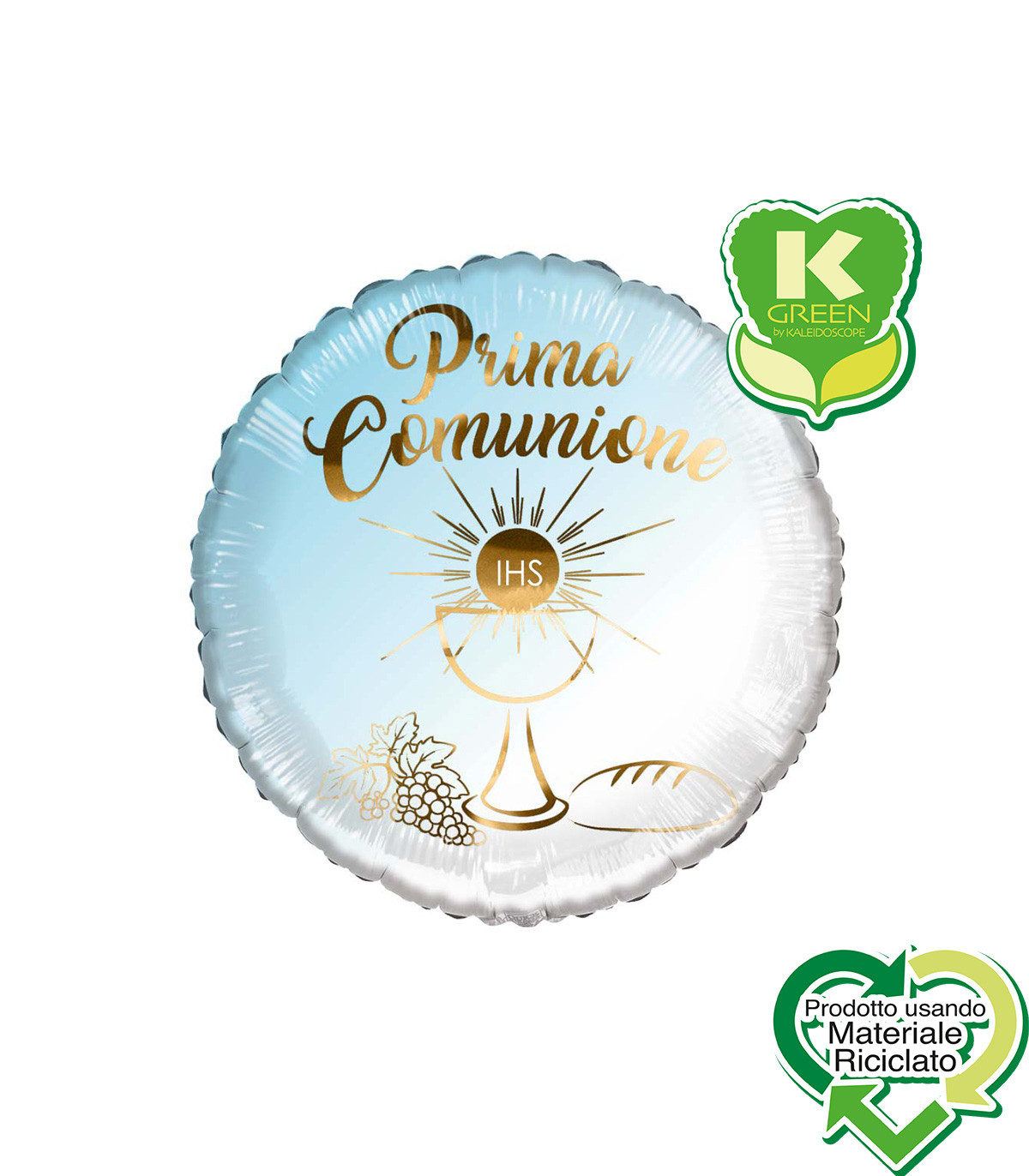 PALLONCINO MYLAR TONDO 18" PRIMA COMUNIONE CELESTE E BIANCO SFUMATO