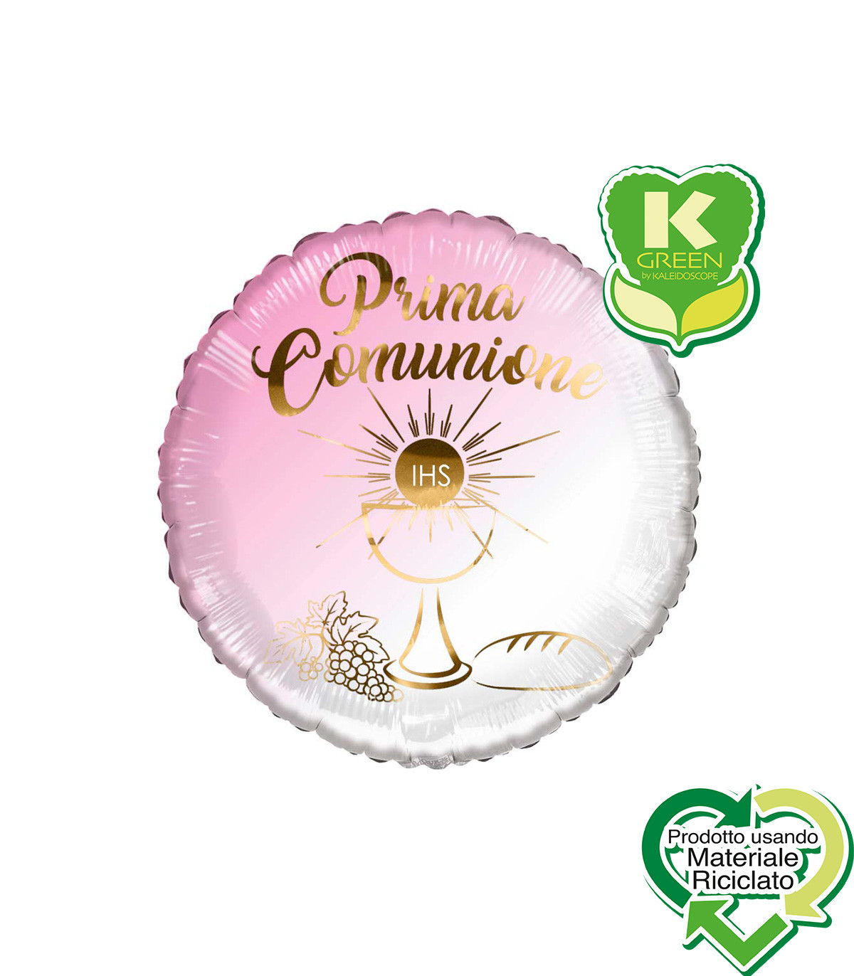 PALLONCINO MYLAR TONDO 18" PRIMA COMUNIONE ROSA E BIANCO SFUMATO