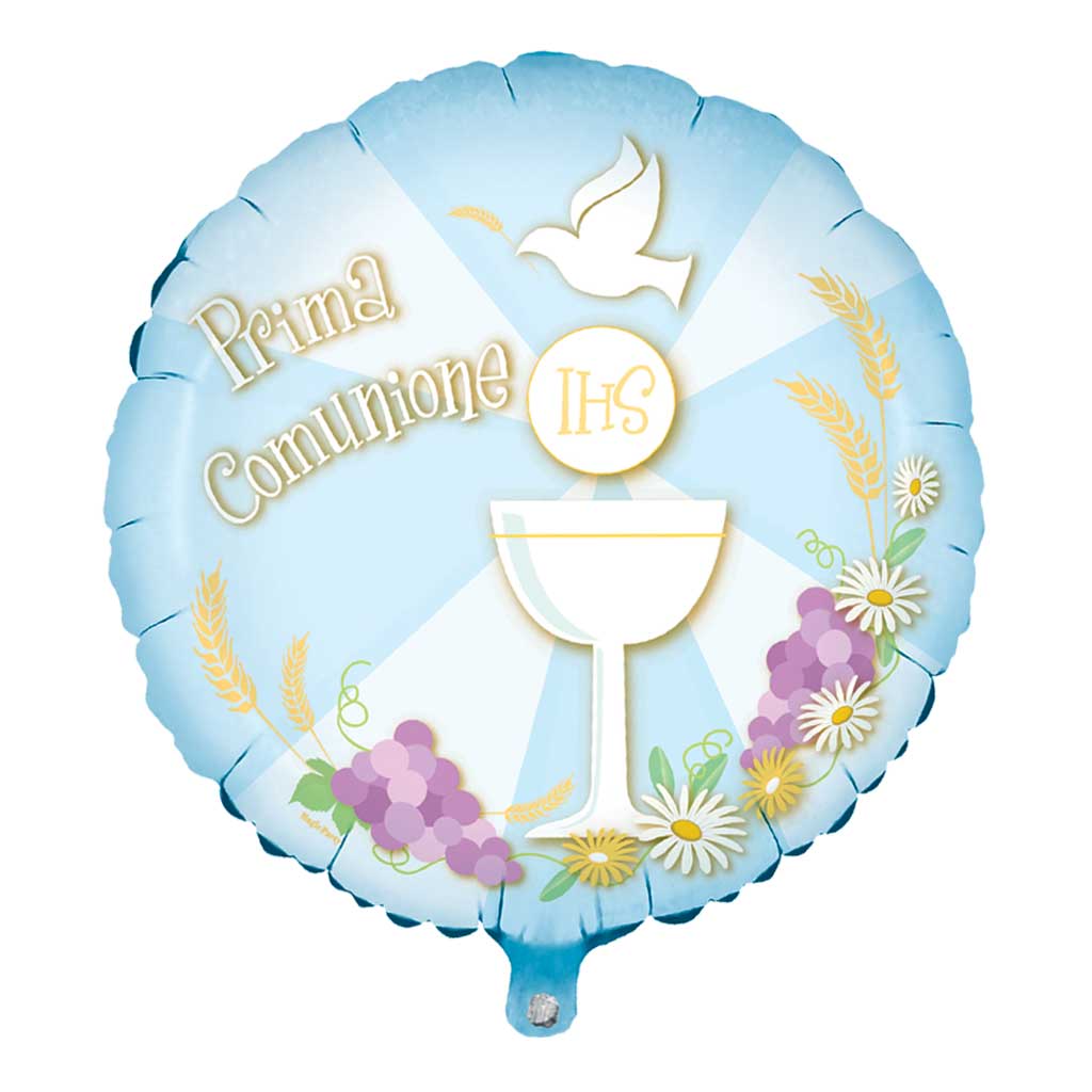 PALLONCINO MYLAR TONDO MINI SHAPE PRIMA COMUNIONE AZZURRO