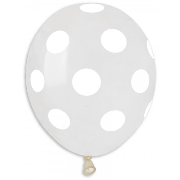 PALLONCINI LATTICE 5" STAMPATI ECO POIS CRISTAL BIANCO 100 PZ