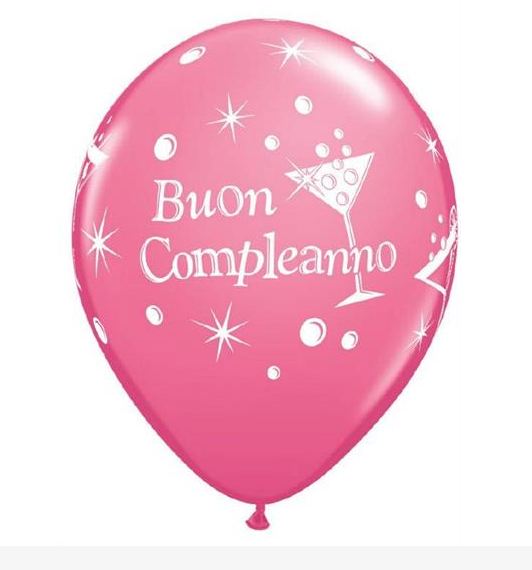 PALLONCINI LATTICE 11" STAMPATI QUALATEX BUON COMPLEANNO ROSA E FUXIA CON CALICI APERITIVO 50 PZ