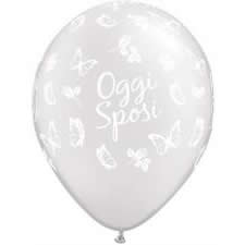 PALLONCINI LATTICE 11" STAMPATI QUALATEX OGGI SPOSI FARFALLE BIANCO SU BIANCO 100 PZ