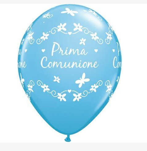 PALLONCINI LATTICE 11" STAMPATI QUALATEX PRIMA COMUNIONE AZZURRO 100 PZ