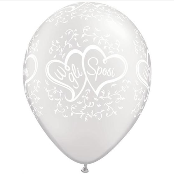 PALLONCINI LATTICE 11" STAMPATI QUALATEX W GLI SPOSI CUORI INCATENATI BIANCO PERLATO 100PZ