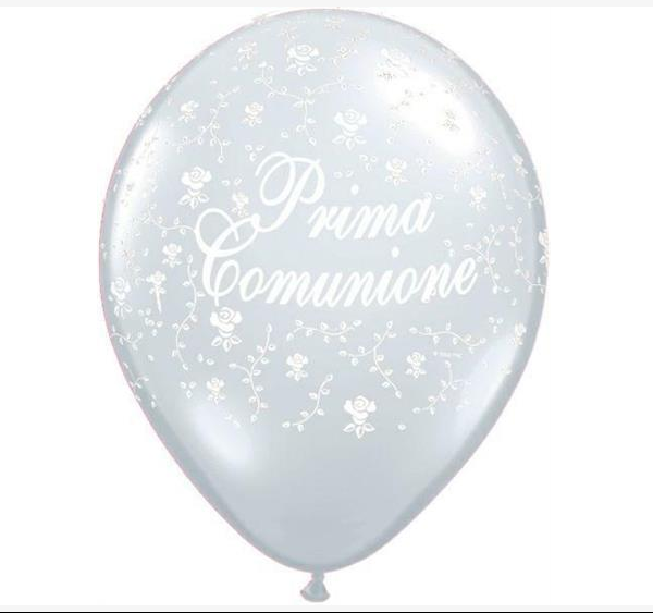 PALLONCINI LATTICE 11" STAMPATI QUALATEX PRIMA COMUNIONE BIANCHI CON FIORI 100 PZ