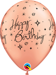 PALLONCINI LATTICE 11" STAMPATI QUALATEX HAPPY BIRTHDAY ROSE GOLD STELLE NERE 25 PZ