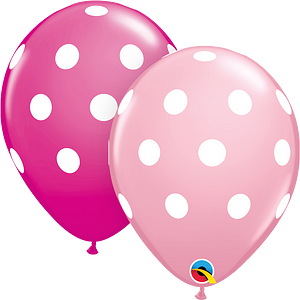 PALLONCINI LATTICE 11" STAMPATI QUALATEX POIS GROSSI ROSA E FUXIA 25 PZ