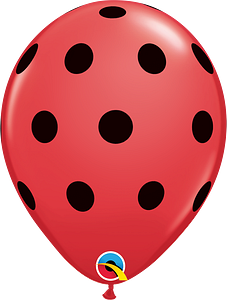 PALLONCINI LATTICE 11" STAMPATI QUALATEX ROSSI CON POIS NERI 25 PZ