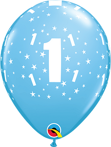 PALLONCINI LATTICE 11" STAMPATI QUALATEX 1° COMPLEANNO AZZURRO STELLE E CERCHIETTI 50 PZ