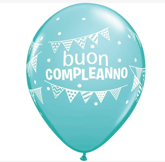 PALLONCINI LATTICE 11" STAMPATI QUALATEX BUON COMPLEANNO MULTICOLOR CON BOLLE 50 PZ