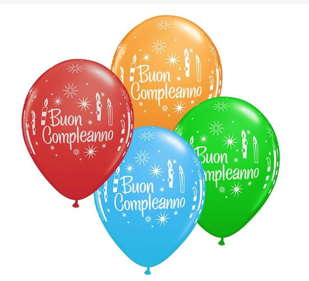 PALLONCINI LATTICE 11" STAMPATI QUALATEX BUON COMPLEANNO MULTICOLOR CON CANDELE 50 PZ
