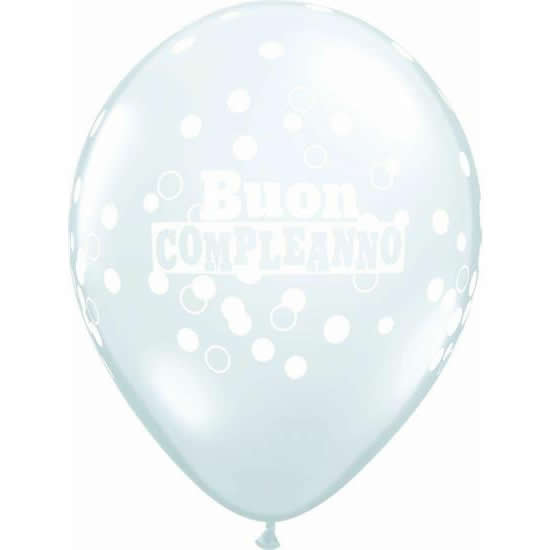 PALLONCINI LATTICE 11" STAMPATI QUALATEX BUON COMPLEANNO TRASPARENTI BRUSH SCRIPT 50 PZ