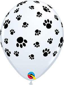 PALLONCINI LATTICE 11" STAMPATI QUALATEX BIANCHI CON ORME DI CANE 25PZ