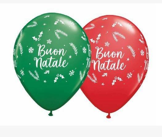 PALLONCINI LATTICE 11" STAMPATI QUALATEX BUON NATALE ROSSI E VERDI CON SCRITTA BIANCA 50 PZ