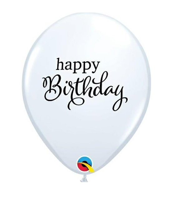 PALLONCINI LATTICE 11" STAMPATI QUALATEX HAPPY BIRTHDAY BIANCHI 25PZ