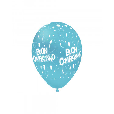 PALLONCINI LATTICE 12" STAMPATI ECO BUON COMPLEANNO CELESTE CON BOLLE 100 PZ