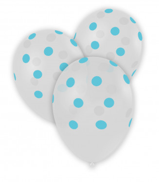 PALLONCINI LATTICE 12" STAMPATI ECO TRASPARENTI CON POIS CELESTE 100 PZ