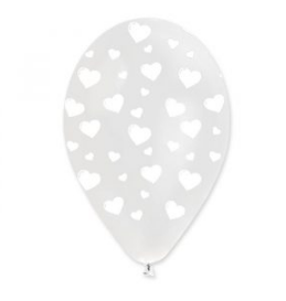 PALLONCINI LATTICE 12" STAMPATI ECO TRASPARENTI CON CUORICINI BIANCHI 100 PZ