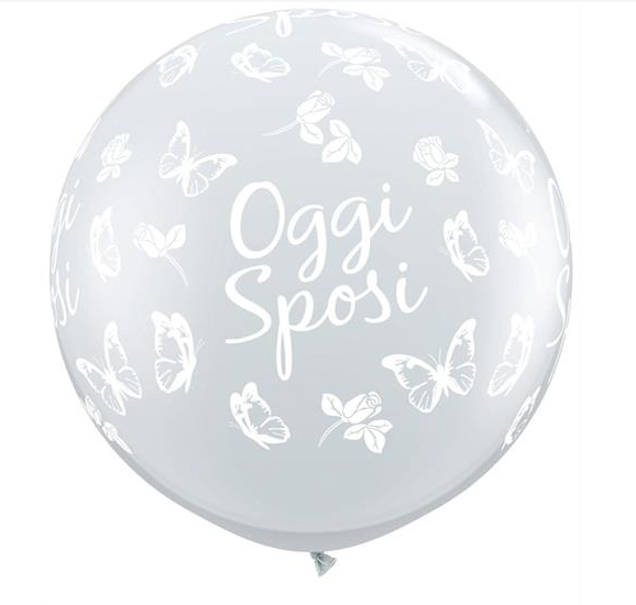 PALLONCINI LATTICE 3' STAMPATI QUALATEX TRASPARENTI ROSE E FARFALLE SCRITTA OGGI SPOSI 2 PZ