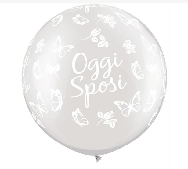 PALLONCINI LATTICE 30" STAMPATI QUALATEX OGGI SPOSI ROSE E FARFALLE BIANCO PERLATO 2 PZ