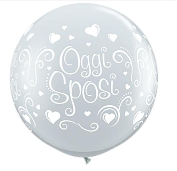 PALLONCINI LATTICE 3' STAMPATI QUALATEX TRASPARENTI OGGI SPOSI CON CUORI BIANCHI 2 PZ