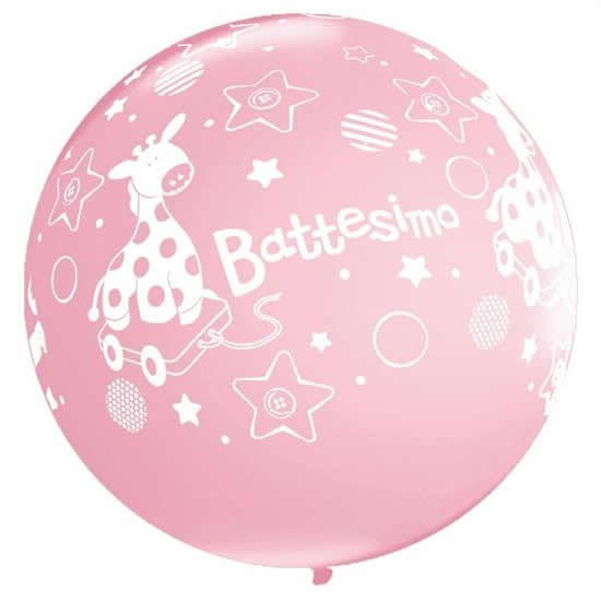 PALLONCINI LATTICE 3' STAMPATI QUALATEX BATTESIMO GIRAFFA ROSA 2 PZ