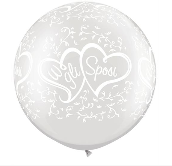 PALLONCINI LATTICE 3' STAMPATI QUALATEX W GLI SPOSI BIANCHI CON CUORI INCATENATI 2 PZ