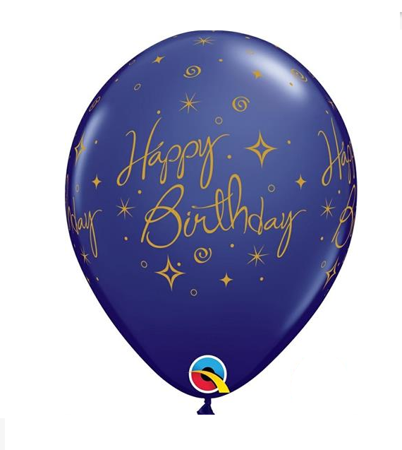 PALLONCINI LATTICE 11" STAMPATI QUALATEX BUON COMPLEANNO BLU STELLE 25 PZ