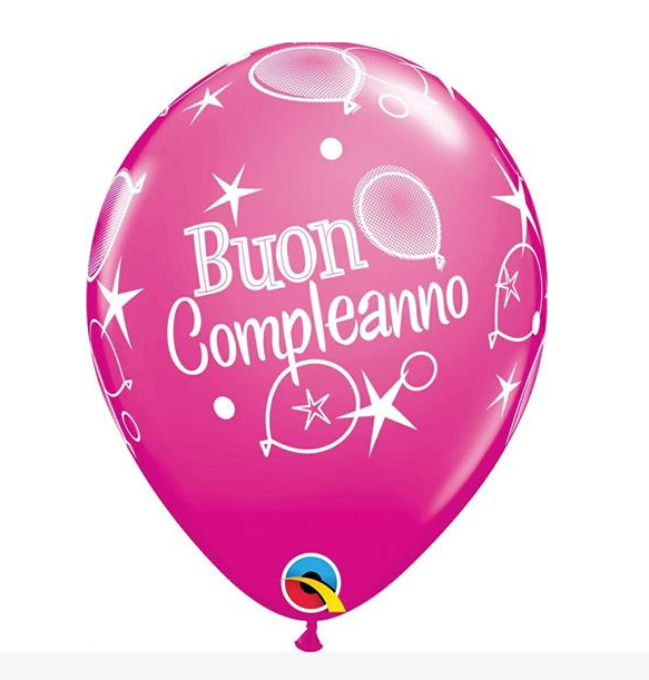 PALLONCINI LATTICE 11" STAMPATI QUALATEX BUON COMPLEANNO PALLONCINI E STELLE FUCSIA 100PZ