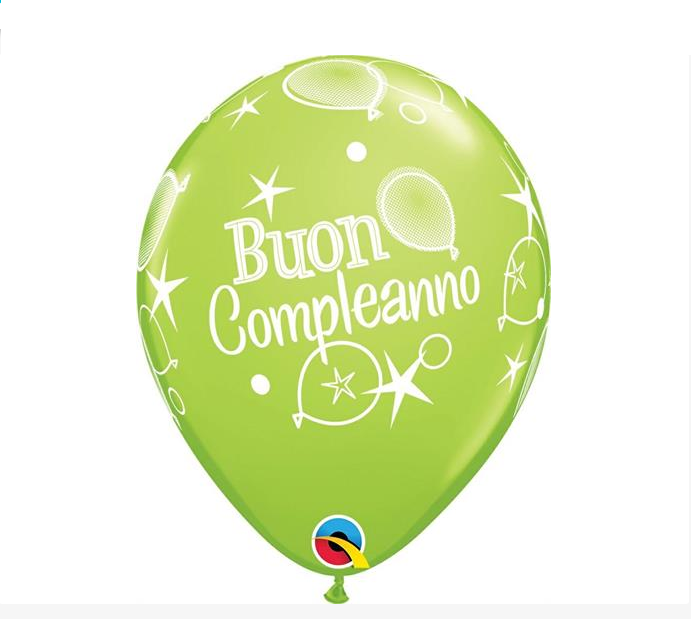 PALLONCINI LATTICE 11" STAMPATI QUALATEX BUON COMPLEANNO PALLONCINI E STELLE VERDE LIME 100PZ