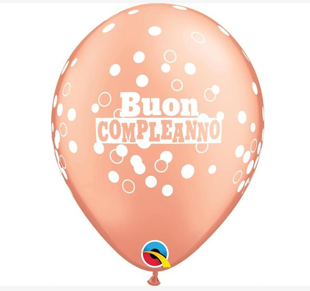 PALLONCINI LATTICE 11" STAMPATI QUALATEX BUON COMPLEANNO POIS ROSE GOLD 100 PZ