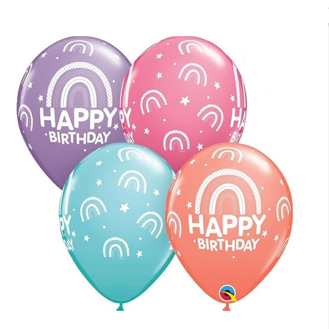 PALLONCINI LATTICE 11" STAMPATI QUALATEX BUON COMPLEANNO RAINBOW 25 PZ