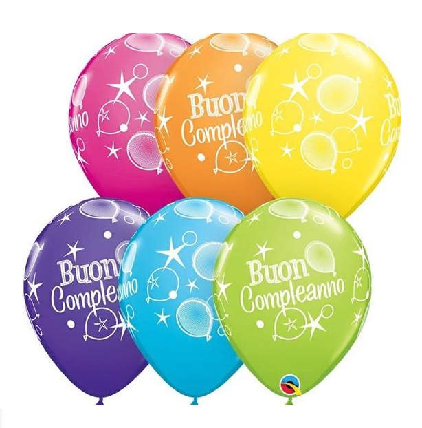 PALLONCINI LATTICE 11" STAMPATI QUALATEX BUON COMPLEANNO COLORI MISTI PALLONCINI STELLE 100PZ